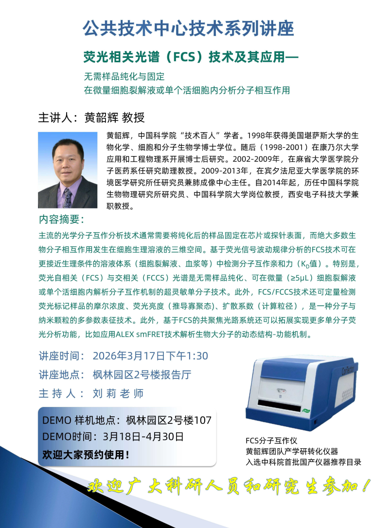 公共技术中心技术系列讲座--荧光相关光谱(FCS)技术及其应用