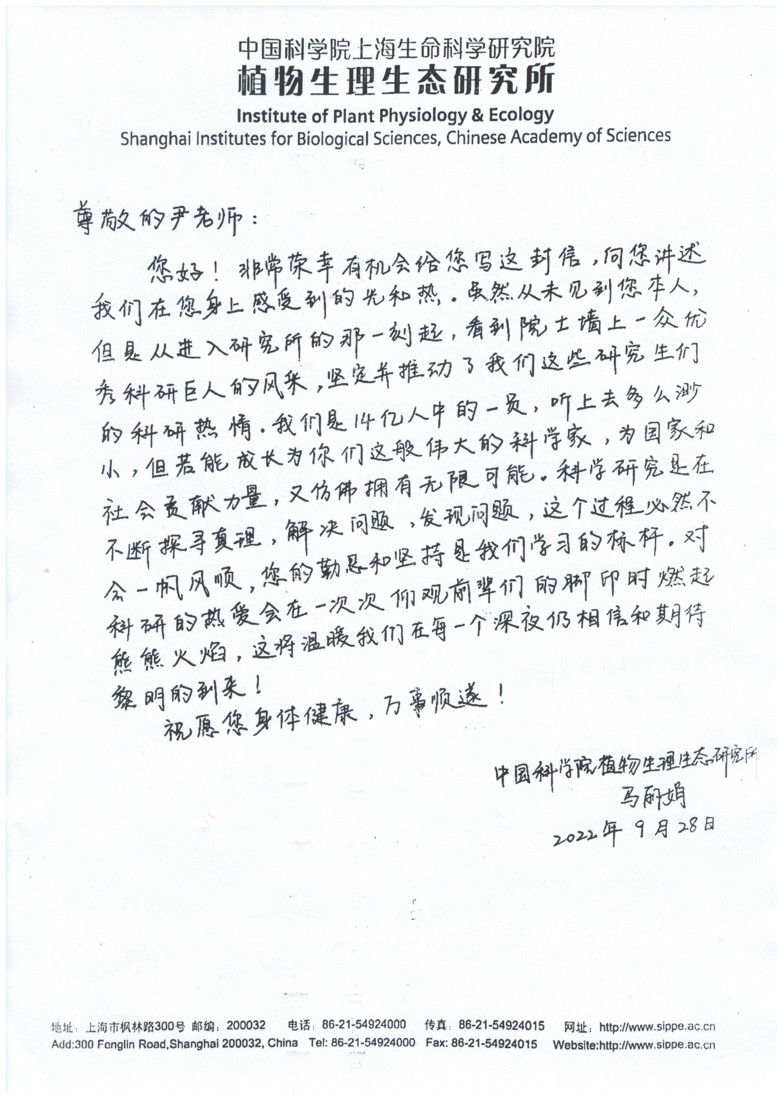 写给尹先生的一封信——马丽娟