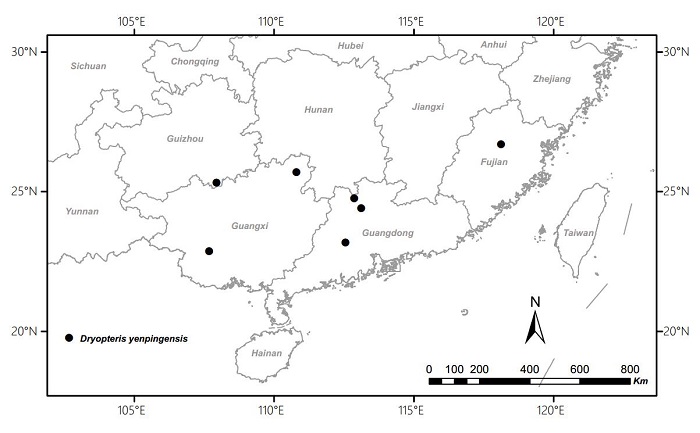 在现代分类学的物种概念中,物种的名称发表是伴随着模式标本的概念而发展起来的。虽然模式标本概念因其本身的僵化因素忽略了物种的变异,因而饱受诟病,但是模式标本概念仍是当前唯一可以依据的凭证标准,也是物种概念之所以成为科学概念而具有可重复性、不能当作“艺术”的基本科学范式。然而,由于模式标本的特殊分类学地位,对其进行任何破坏性的观察和研究都是被禁止的,从而导致众多物种因为缺乏足够的研究而长期处于存疑状态。因此,前往模式产地找寻该物种的原始信息成为最为有效的替代途径,本研究为解决世界上众多疑难物种的处理提供了一个范例,论文以题为“基于模式产地的分子证据澄清南平鳞毛蕨的分类学地位”在线发表于《植物学报》。研究工作得到了科技部科技基础专项(2015FY110200)和上海市绿化和市容管理局科学技术项目(G162401)的支持。