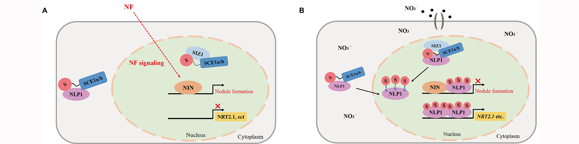 谢芳研究团队揭示了NLP1 SUMO化修饰调控硝酸盐信号转导和共生结瘤的新机制