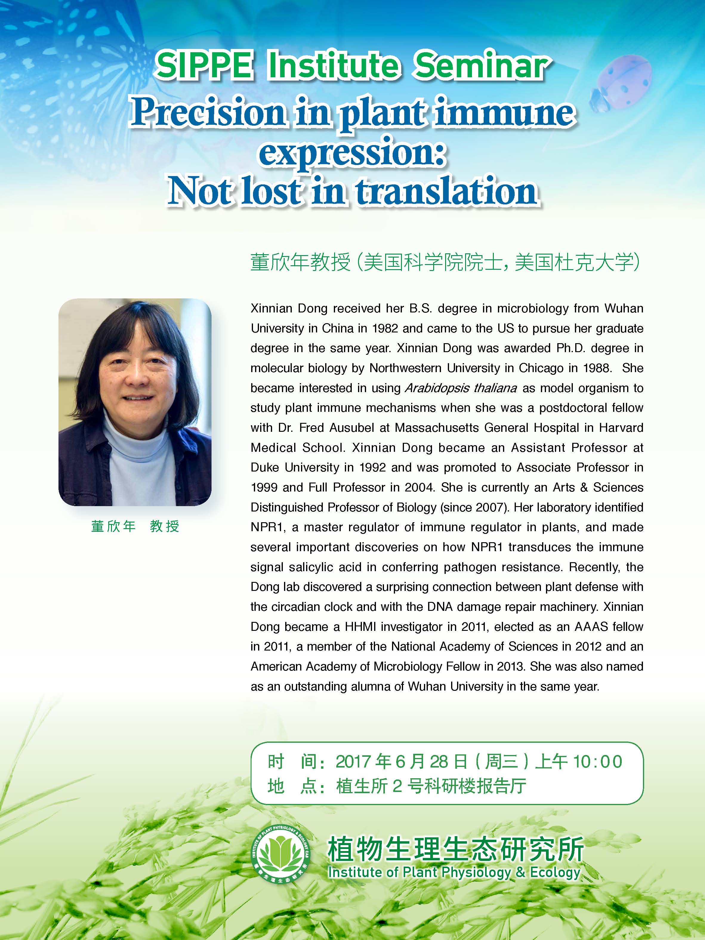 Institute Seminar(6月28日)--Precision in plant immune expression: Not lost in translation