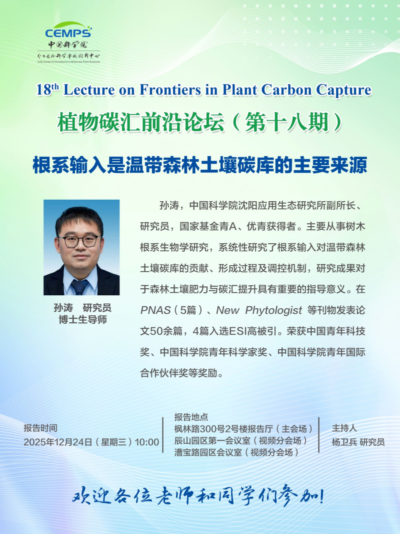 植物碳汇前沿论坛(第十八期)--根系输入是温带森林土壤碳库的主要来源