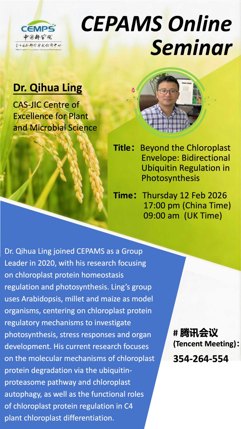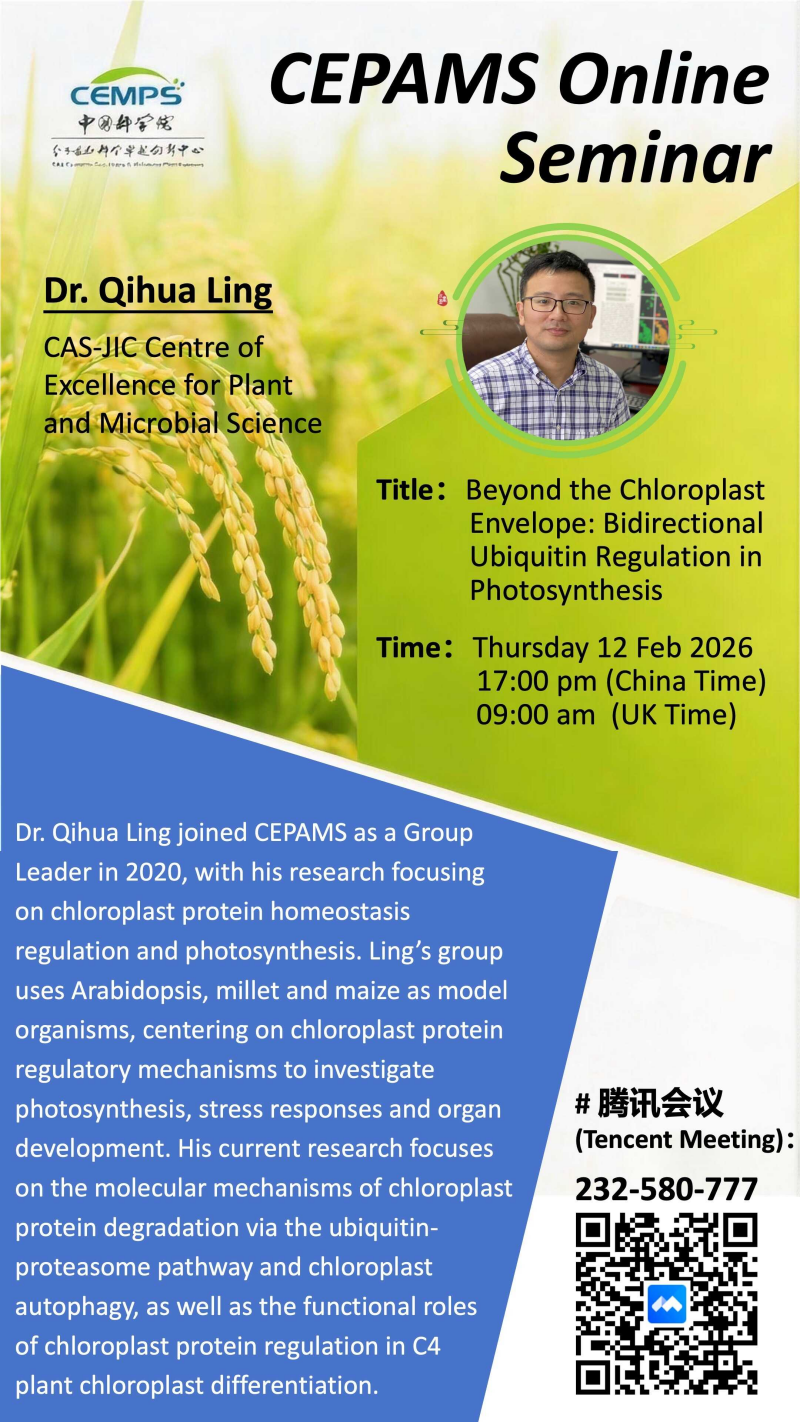CEPAMS Online Seminar--Beyond the Chloroplast Envelope: Bidirectional Ubiquitin Regulation in Photosynthesis