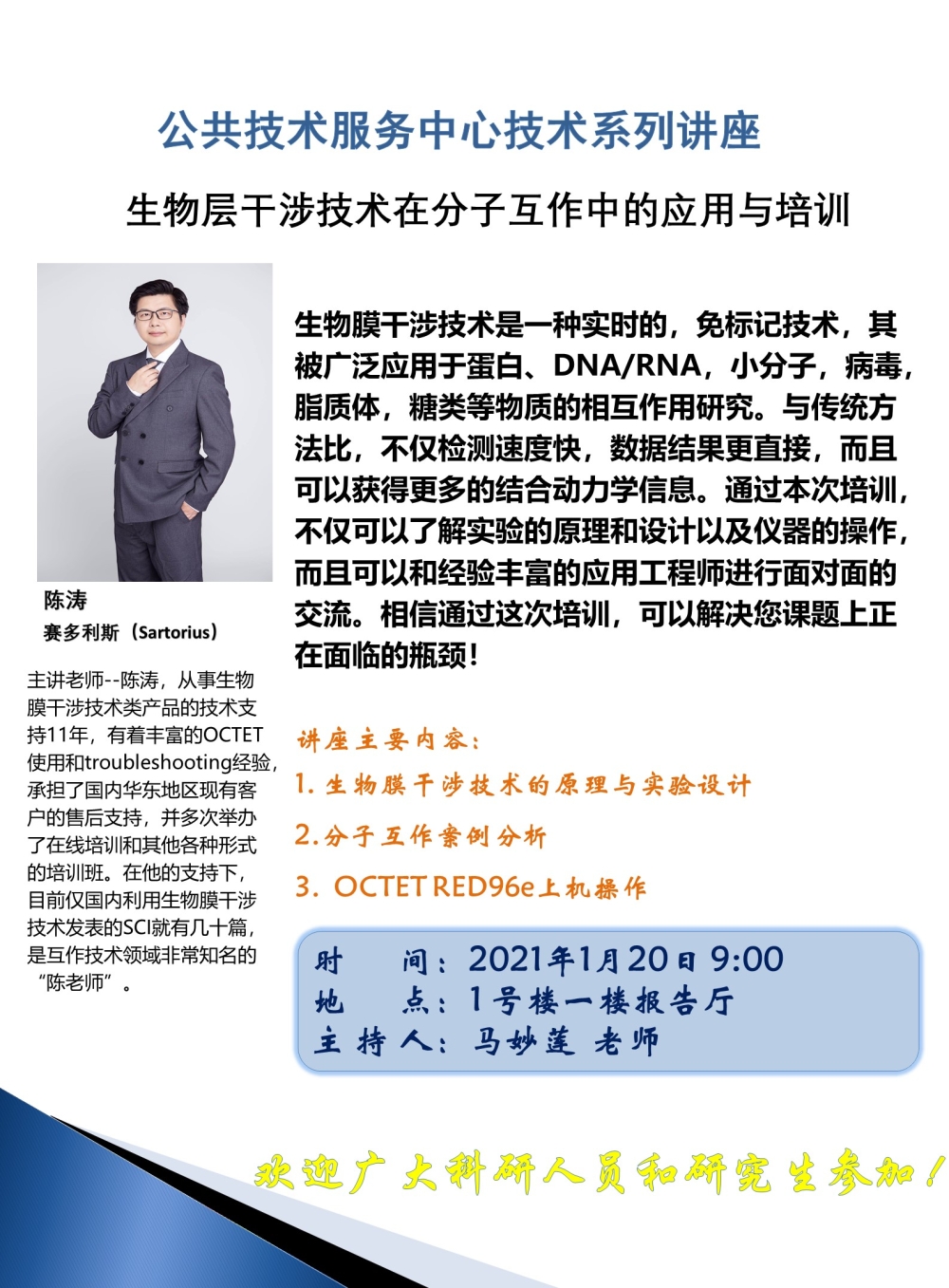 公共技术服务中心技术系列讲座--生物层干涉技术在分子互作中的应用与培训