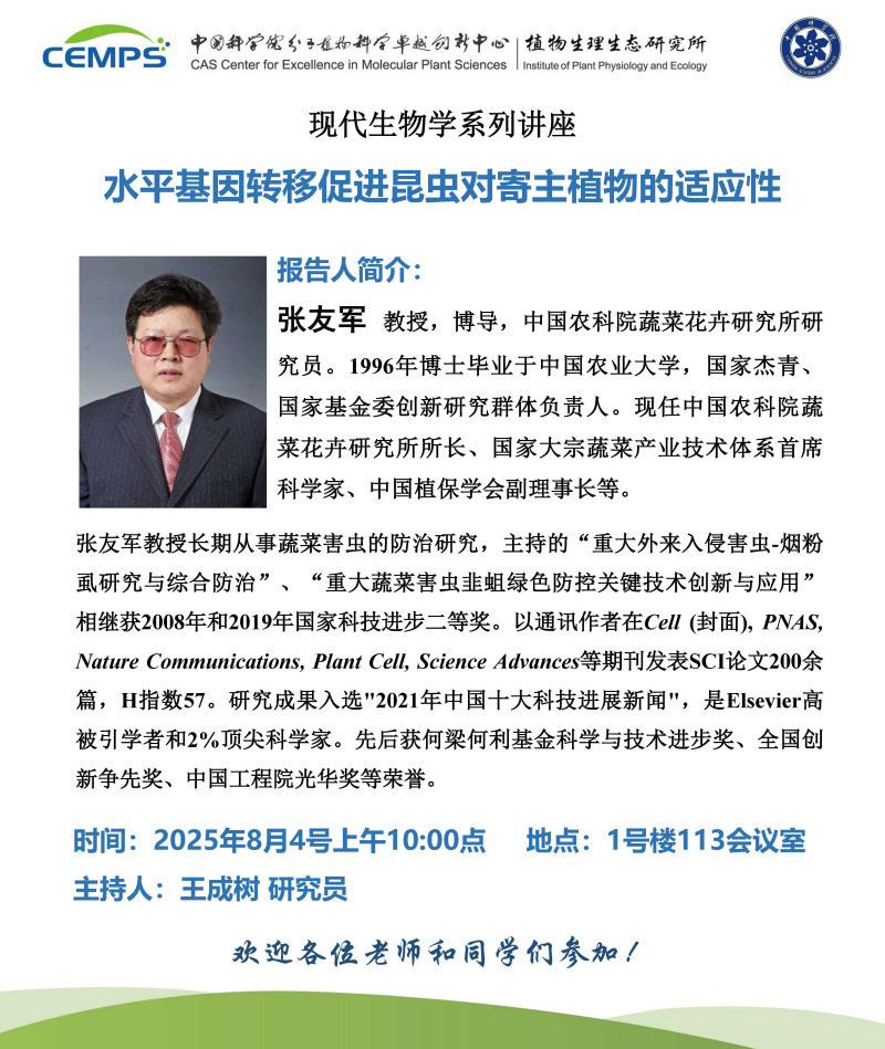 现代生物学系列讲座--水平基因转移促进昆虫对寄主植物的适应性