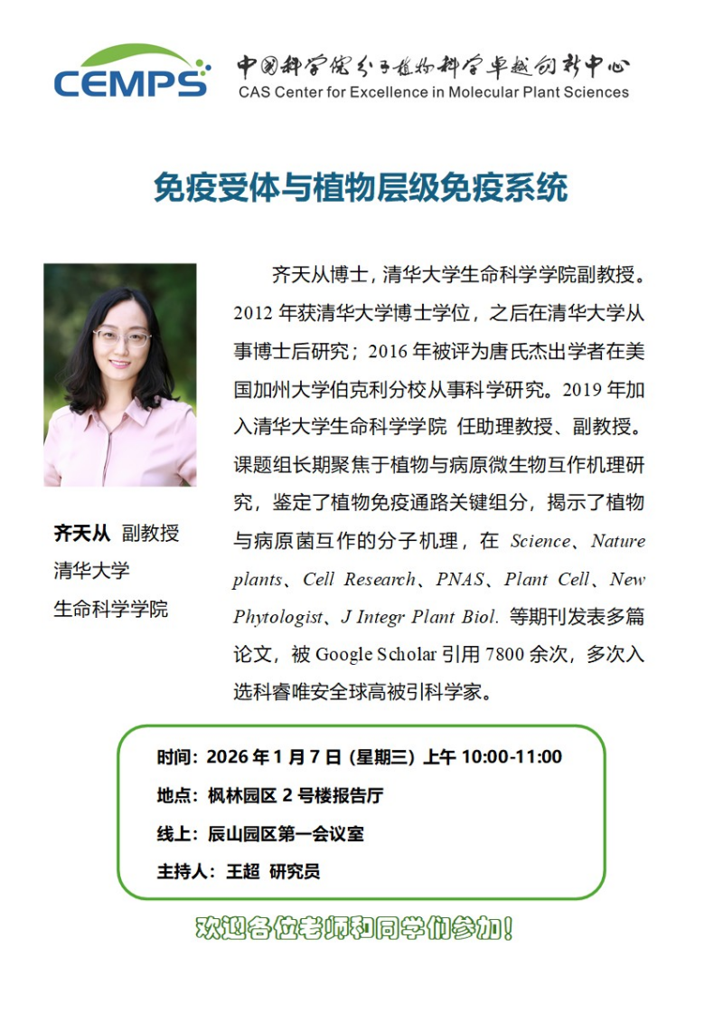 现代生物学系列讲座--免疫受体与植物层级免疫系统