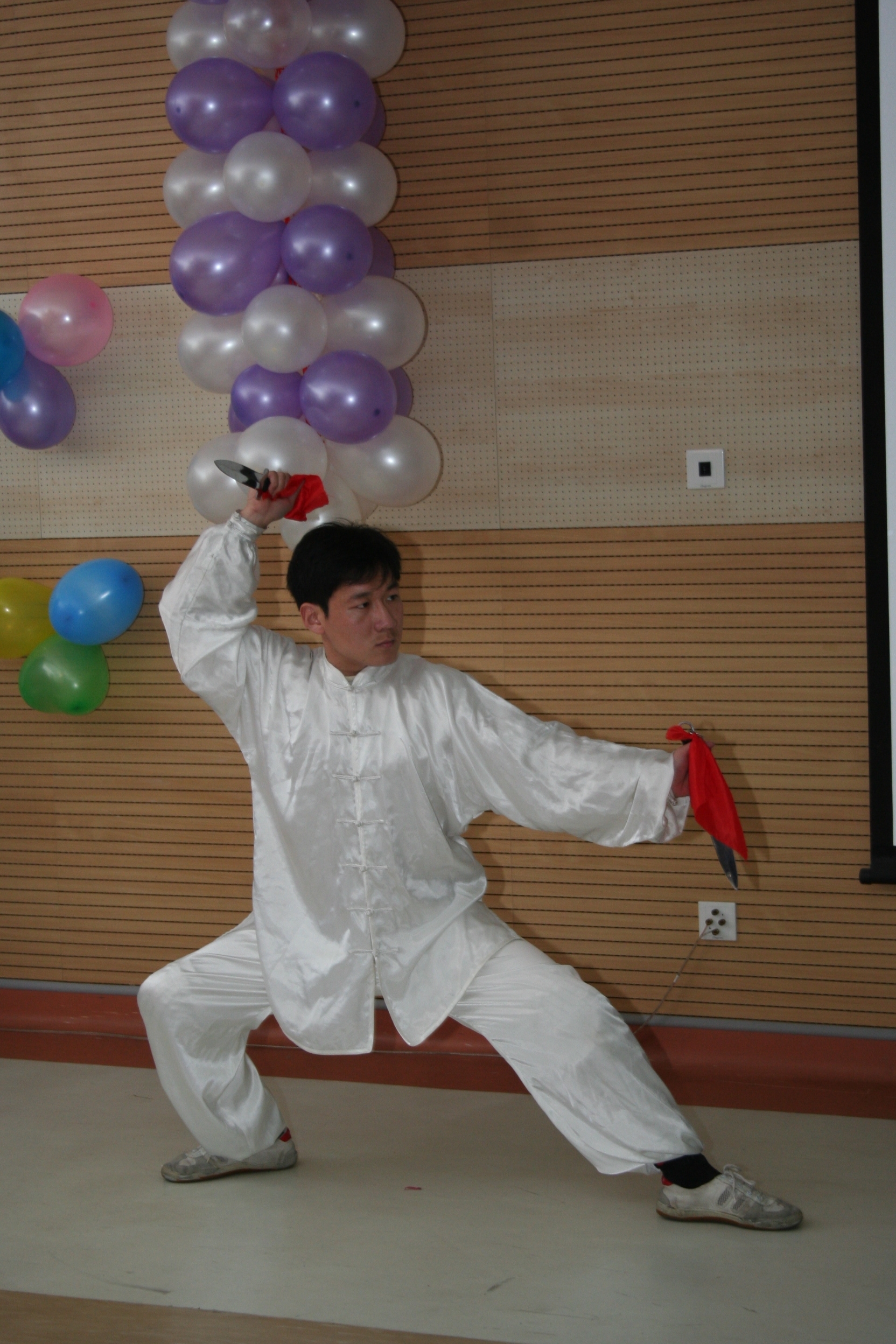 色彩缤纷的气球、晶莹闪烁的彩灯把联欢会现场装点得格外喜庆、热闹。饱含激情的歌唱,诙谐幽默的游戏和小品、技艺精湛的舞蹈武术表演,引起观众一阵阵热烈的掌声。精彩纷呈的舞台与情绪高涨的观众融汇出一派喜庆、祥和的欢乐气氛。(鞠泓供稿)