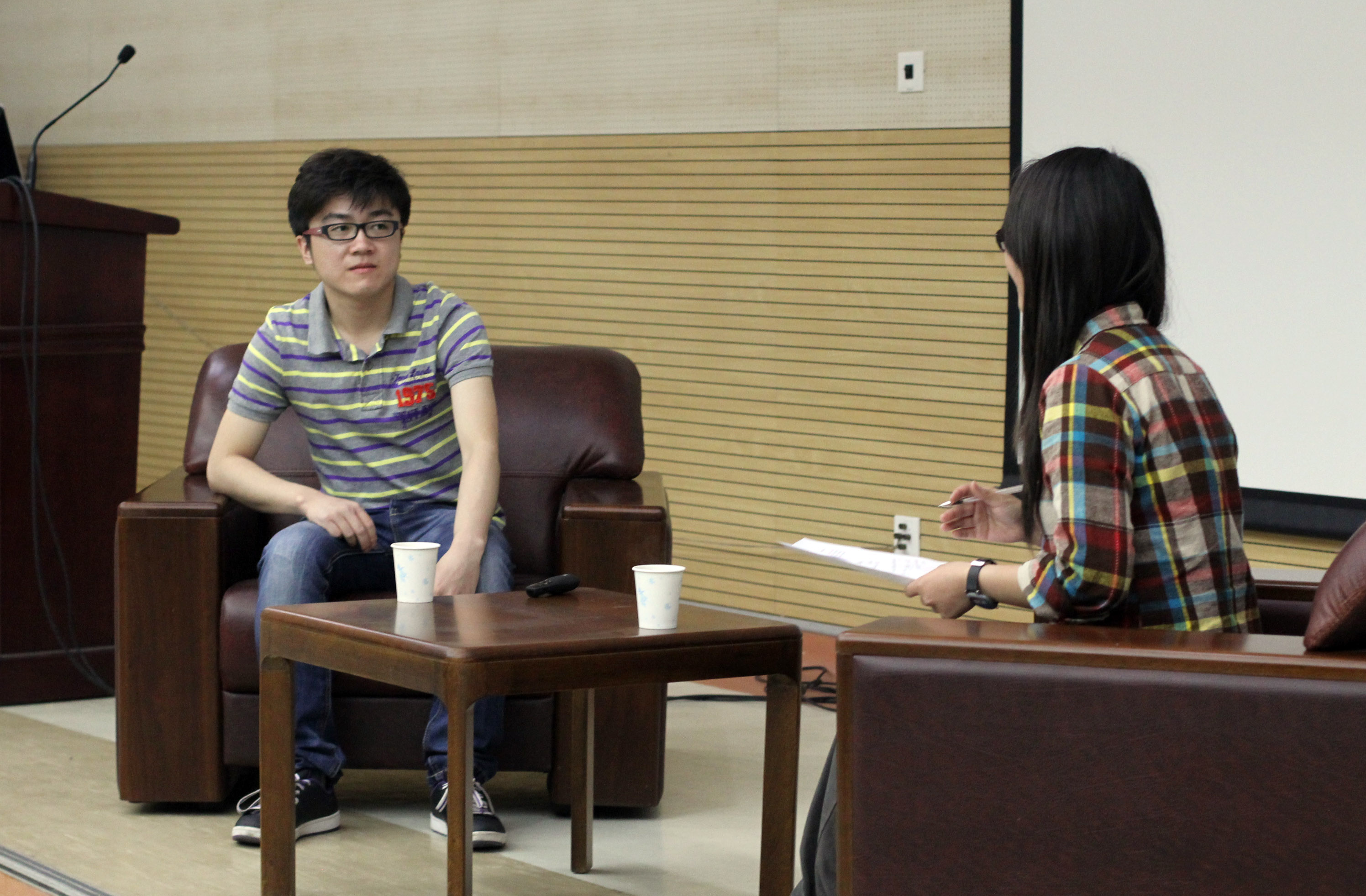 黄鹏羽首先为大家介绍了他的发现历程,从课题的设计到文章的思路,以及实验的创新点和遇到的困难,同学们仔细听完后也纷纷提出了自己的疑问,并与他进行了深入的交流。随后,黄鹏羽来到嘉宾席就坐,与主持人和观众进行了互动和访谈。访谈围绕对课题方向的选择、实验过程中如何平衡自己的心态、如何提高自己的专业技能、怎样正确对待课程的学习、处理和导师之间的关系,以及未来的规划等方面展开。同学们也就如何筛选和阅读文献、面对失败如何调整自己的情绪、怎样有效地设计并开展实验等问题与黄鹏羽进行了交流。在交谈中,黄鹏羽告诉大家要始终保持乐观的心态,在实验中尽早学会自立,广泛地阅读专业领域的文章;保持高的效率和坚持不懈的努力,学会向他人寻求帮助与合作。