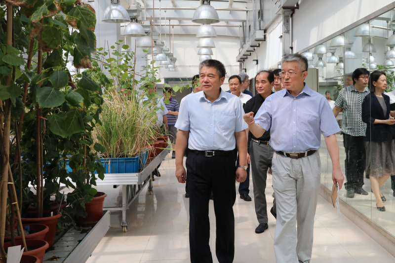 邓建平一行首先参观了人工气候室。在随后召开的研讨会上,分子植物卓越中心副主任龚继明介绍了中心的历史沿革、发展定位、科研进展等工作。胡永红介绍了上海辰山植物园在院地合作框架下开展科学研究、构建科普体系等方面取得的成效,对推进双方下一步合作提出了建议。