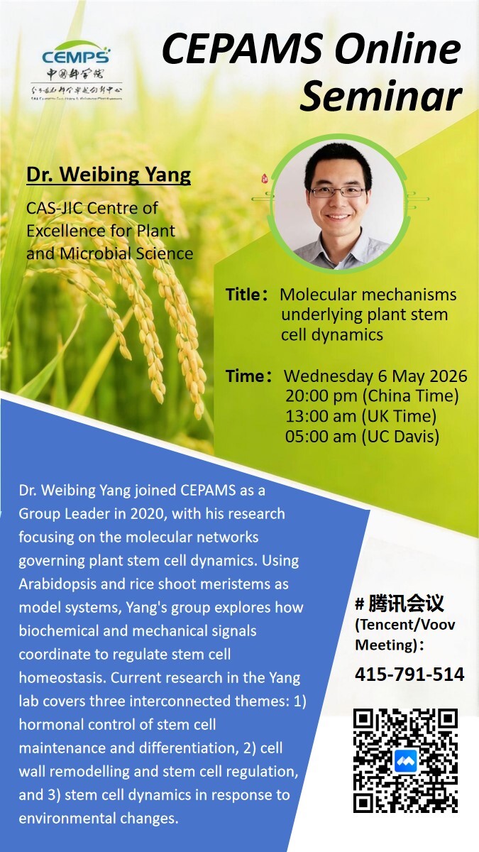 CEPAMS Online Seminar--Molecular mechanisms underlying plant stem cell dynamics