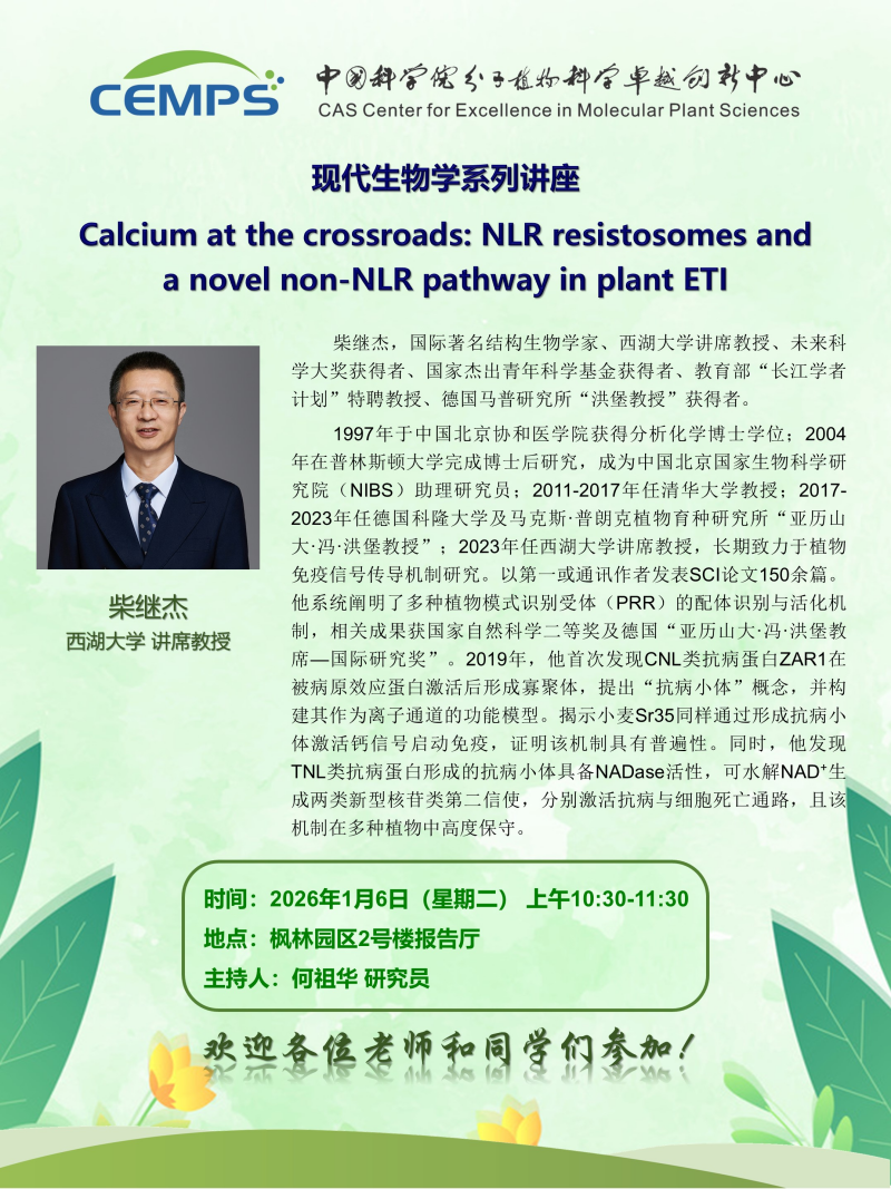 现代生物学系列讲座--Calcium at the crossroads: NLR resistosomes and a novel non-NLR pathway in plant ETI